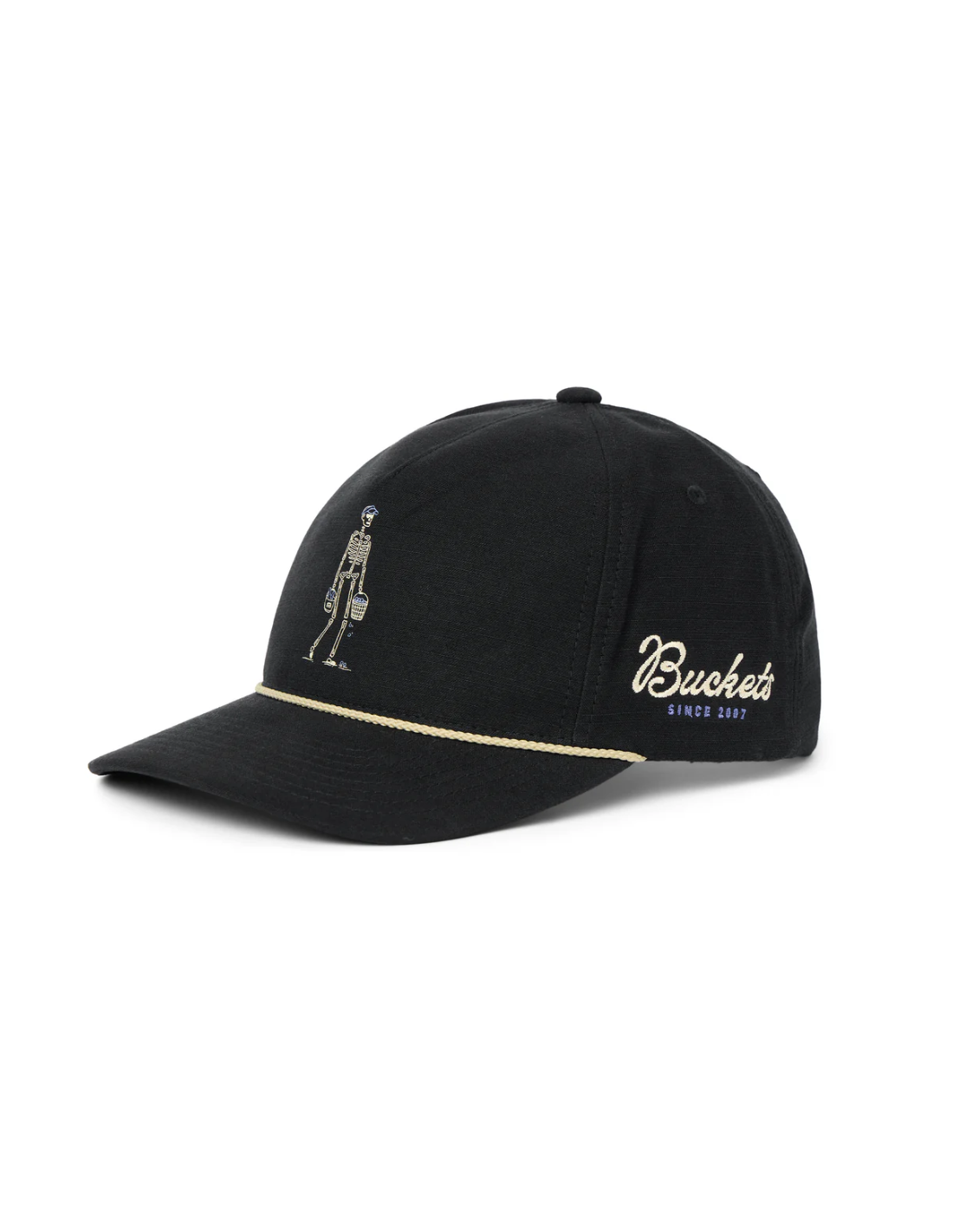 This hat comes with an attitude. The LOST BUCKETS Snapback features a printed skeleton golf graphic, an embroidered “buckets” side hit, and a rope detail for extra flair. This hat is as comfortable as it is rebellious.