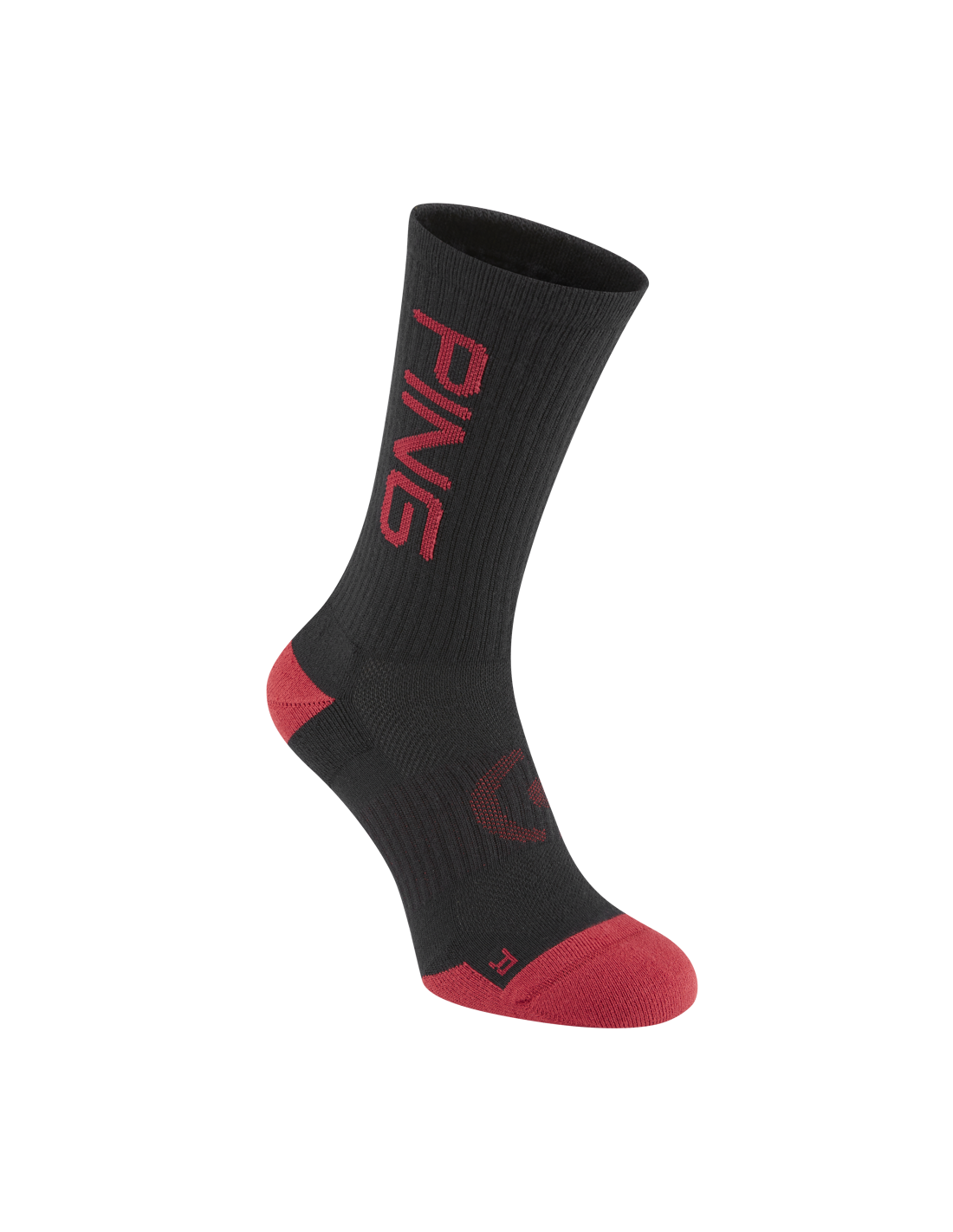A two-pair pack of PING performance crew socks, designed to provide support and comfort on the course
