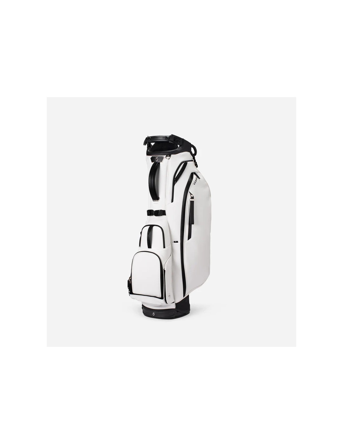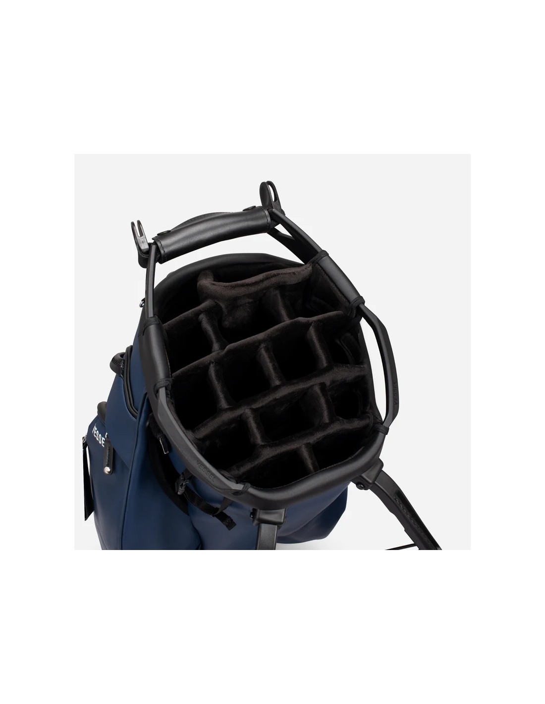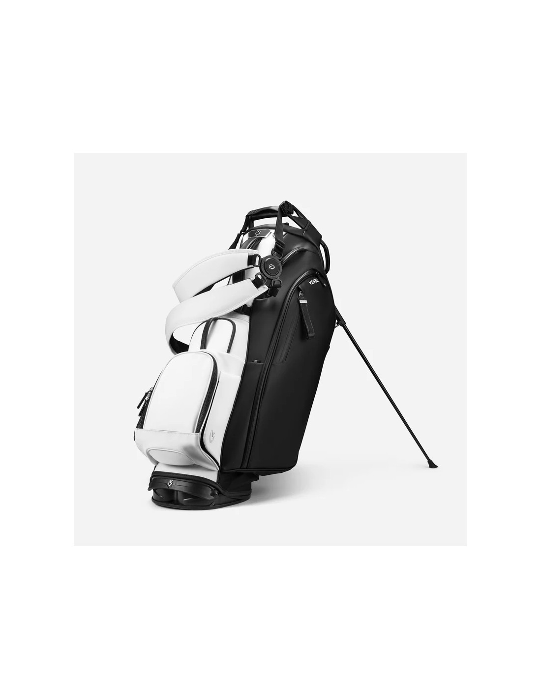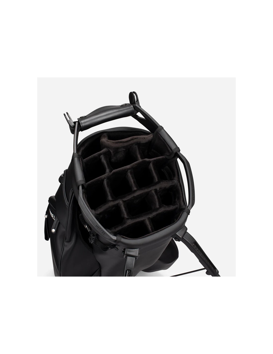 The Player V Pro uses VESSEL's patented technologies (Equilibrium Double Strap and Rotator Base) for maximum balance and superior stability. Intentionally placed high strap-attachment points promote further balance and eliminate club fallout while the bag is being carried.