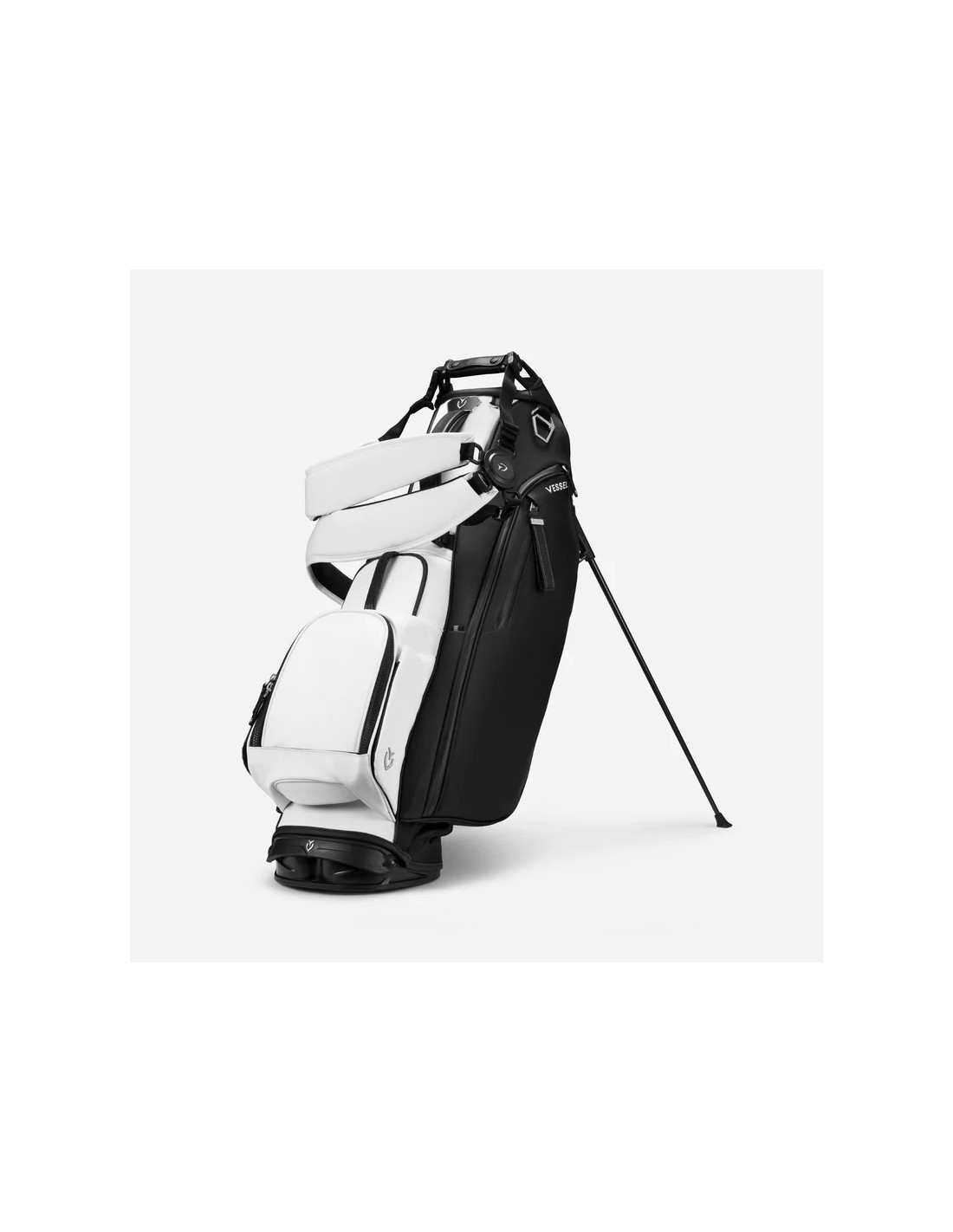 The Player V utilizes VESSEL’s patented technologies (Equilibrium Double Strap and Rotator Base) for maximum balance and superior stability. Intentionally placed high strap-attachment points promote further balance and eliminate club fallout while the bag is being carried.