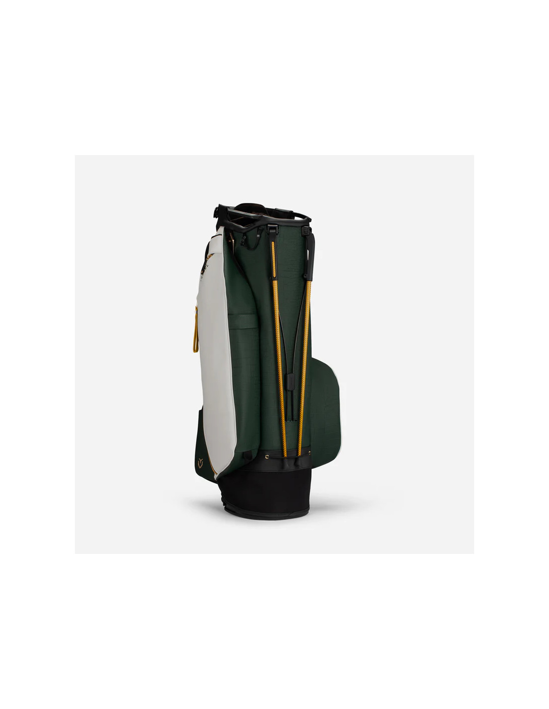 The Player V Pro golf stand bag utilizes our performance proven, patented Rotator Stand System. This flex activation, combined with a wide, low-profile base allows the bag to sit flush against the ground when the legs are fully deployed.