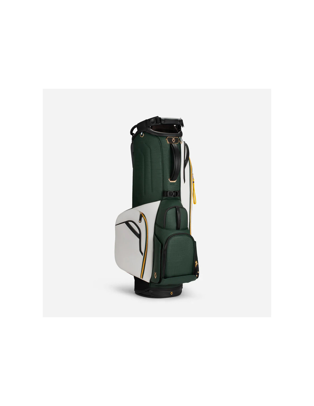 The Player V Pro stand bag is equipped with our patented Equilibrium 2.0 Double Strap. This ergonomic strap features an 8-point swivel mechanism which self-adjusts to each golfer’s gait.
