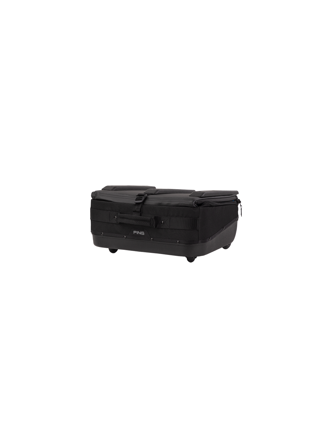 Travel with confidence knowing your golf clubs are well-protected in this durable Rolling Travel Cover in Black. Featuring thick padding and a sturdy construction, it accommodates bags ranging from carry bags to full-size cart bags. Designed for convenience, it includes six handles for easy manoeuvrability, internal pockets for added storage, and interlocking skid rails for smooth rolling over curbs. The cover folds down compactly for storage when not in use. Made from tough 1200D polyester on the front and 600D on the sides.