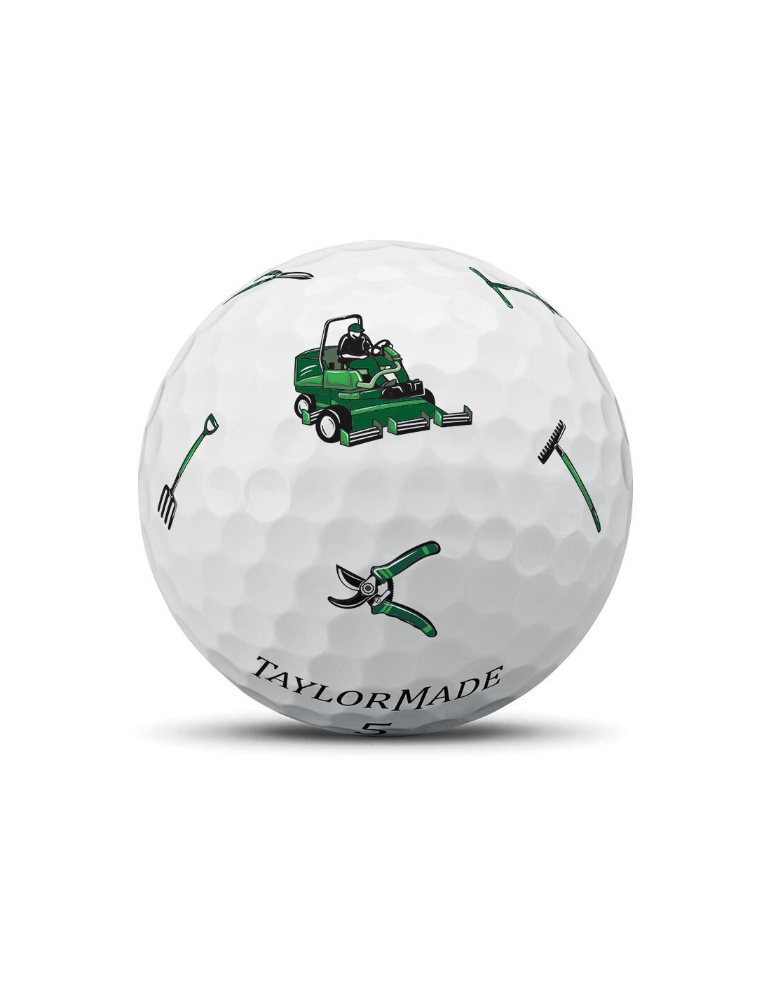Las bolas de golf TP5 pix™ Season Opener rinden homenaje al equipo que se encarga de mantener impecables las instalaciones del campo anfitrión. El diseño pix en cada bola muestra cortadoras de césped, rastrillos, palas y cortasetos.