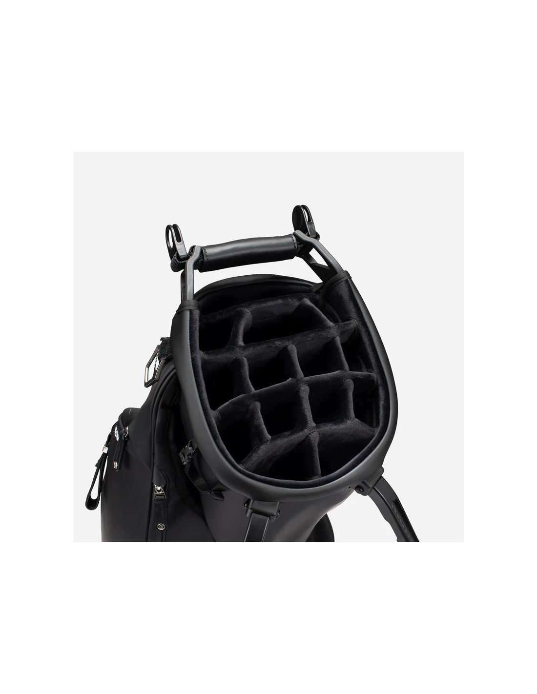 La nueva generación de la bolsa de golf con soporte más premiada, la Player V, llega para ofrecerte la mejor experiencia de transporte. Desde el bolsillo oculto para objetos de valor hasta los compartimentos para bebidas, cada bolsillo ha sido cuidadosamente diseñado y ubicado para mejorar la organización, la accesibilidad y la comodidad en el campo.