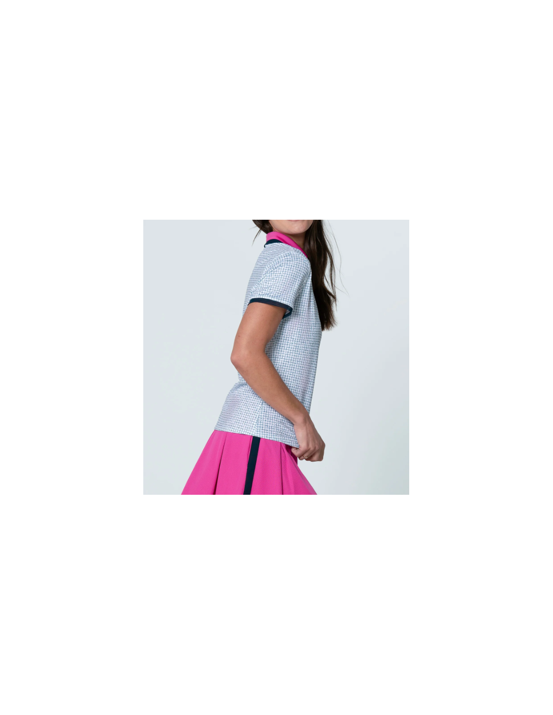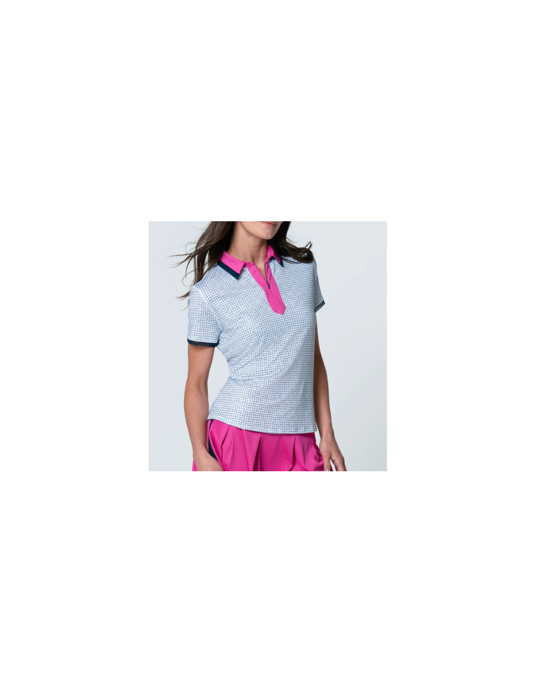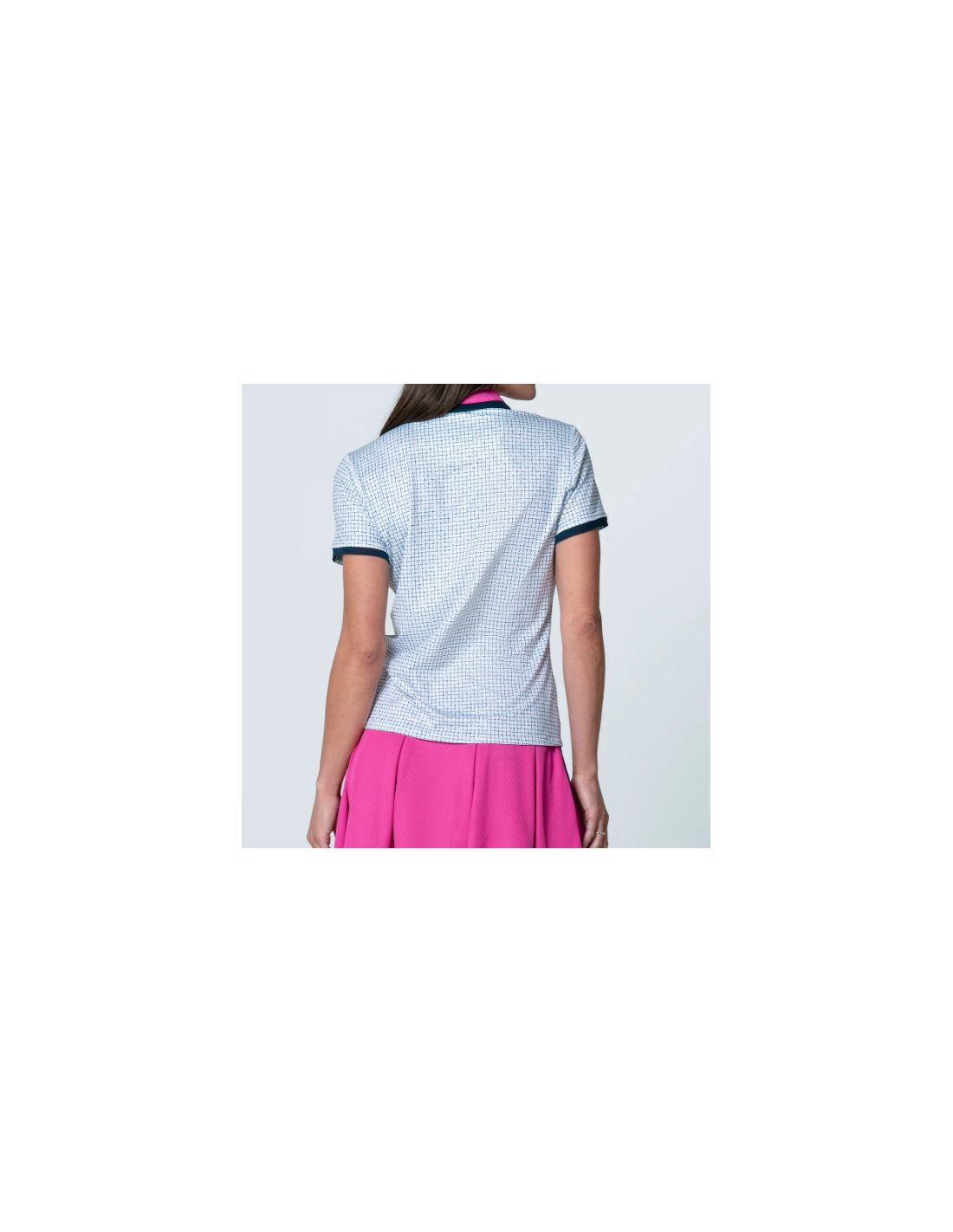 Esta elegante prenda recupera el tejido bouclé con un estampado de cuadros y un llamativo cuello y tapeta en rosa que enmarcan el look a la perfección, dándole un aire fresco a este polo atemporal. Confeccionado en un tejido ligero de alto rendimiento.