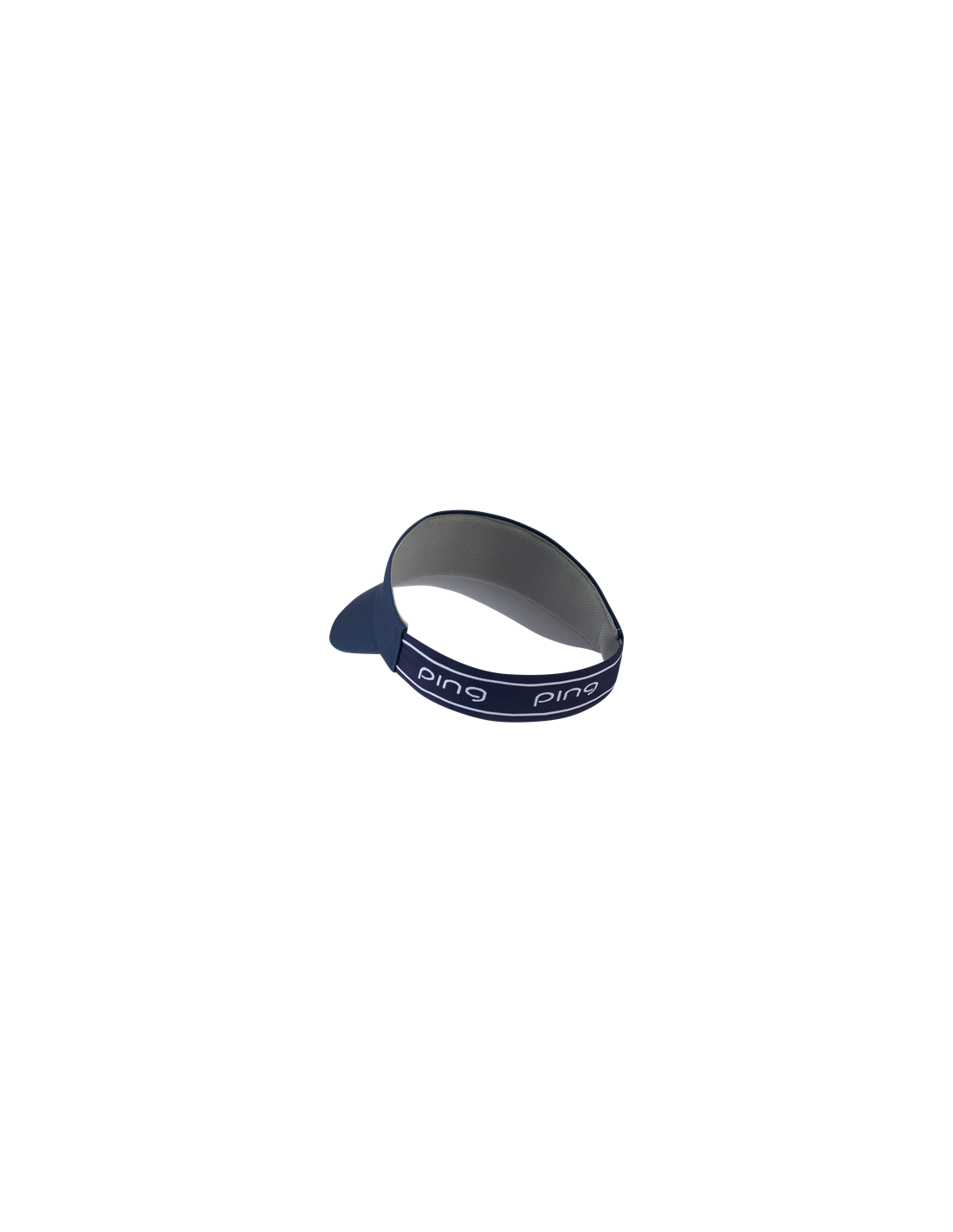 Visera Ping Arlia con banda para la cabeza interior que absorbe la humedad, incluye correa trasera elástica y logo de PING en la parte delantera.